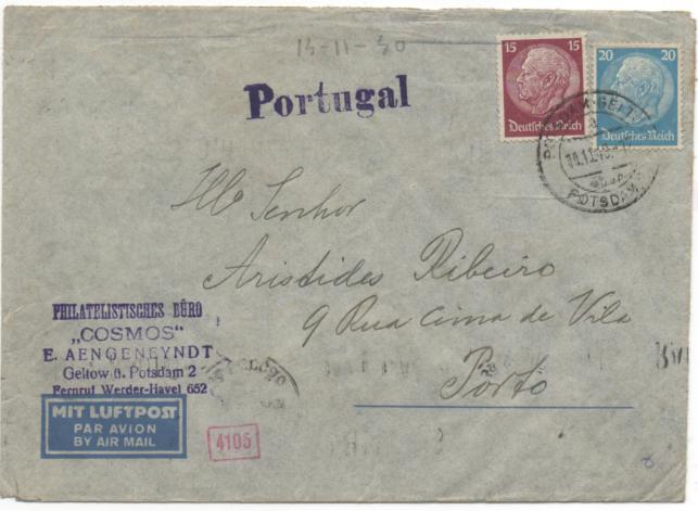 Potsdam 14.11.1940 --> Lisboa 16.11.1940 -- > Porto 17.11.1940.