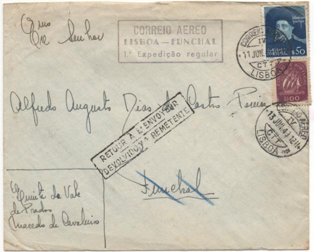 Lisboa -- > Funchal CORREIO AÉREO 13-JUN-49