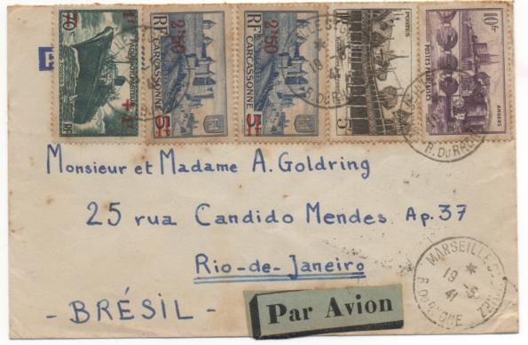 Marseille 19.05.1941 -- > Brasil Correio aéreo 03.06.1941 -- > Santa Thereza 04.06.1941.