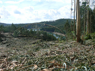 Agora é possível vislumbrar desde a zona onde está a casa a albufeira do rio Criz, devido ao abate de eucaliptos.