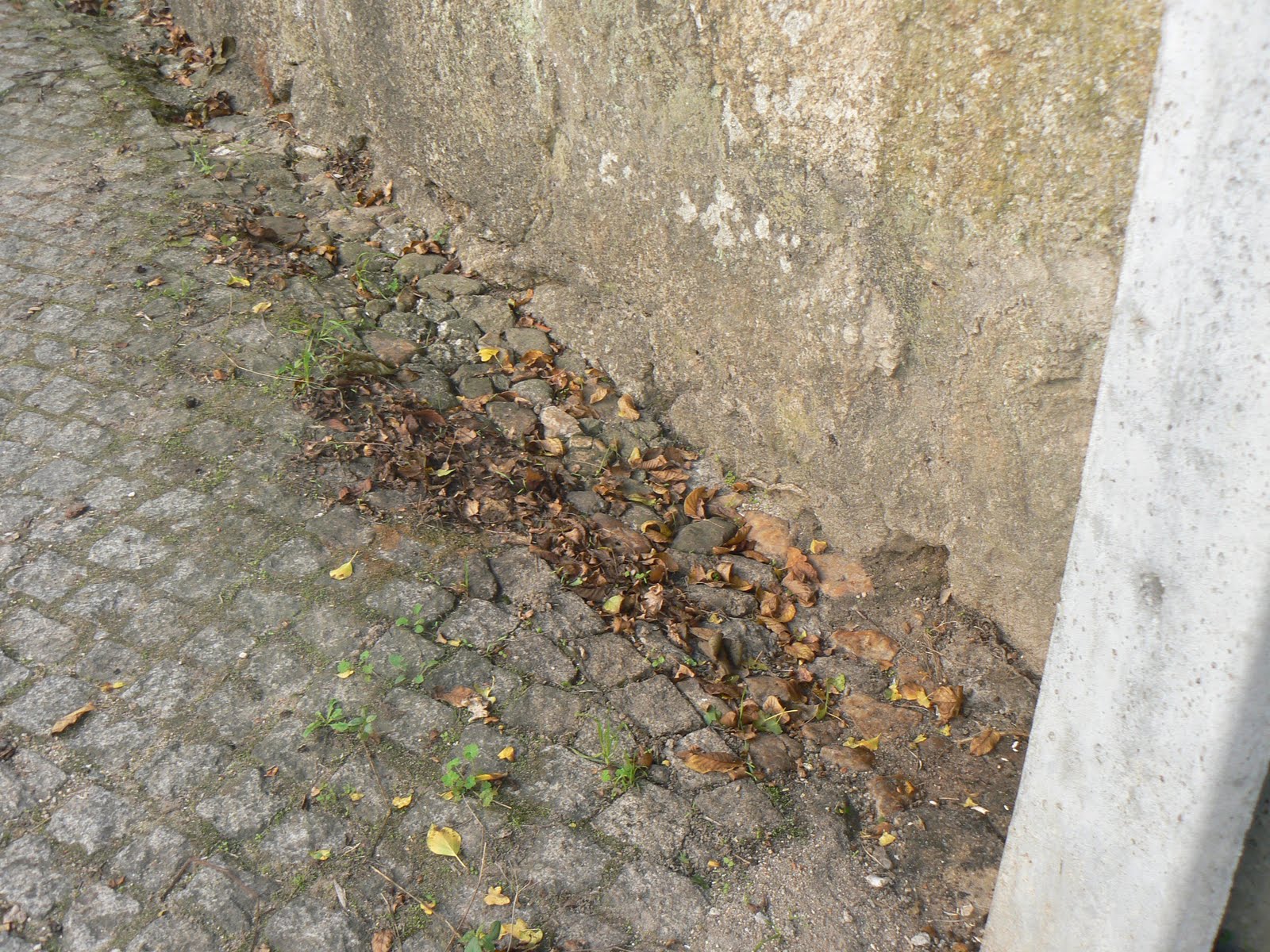 Vestígios da calçada romana: felizmente foram algumas pedras em mármore aproveitadas na zona lateral de um pequeno trecho da nova calçada.