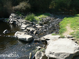 A ponte pedonal; o rio corre agora do lado da Póvoa do Lobo, outrora, tudo indica corria do lado de Rio Milheiro: Os blocos de pedra estão colocados até ao actual curso do rio, estando até aí, tudo assoreado.