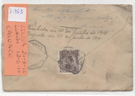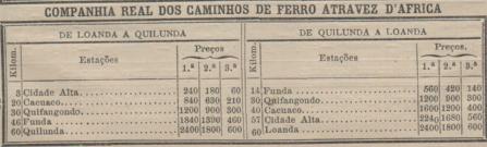 Foi transportada pelo paquete Zaire até Luanda, seguindo depois por comboio até CACUACO nos arredores de Luanda onde chegou (segundo nota escrita) a 14-6-1910.