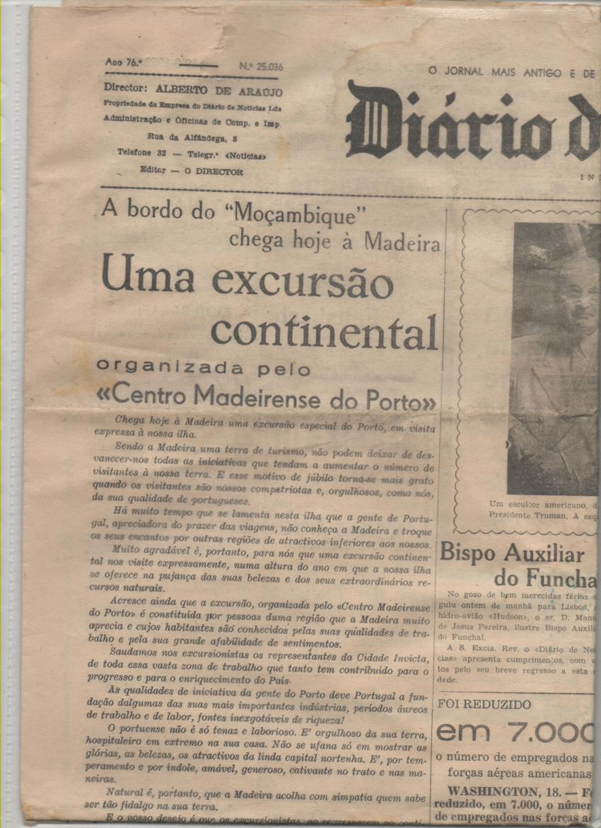 Uma excursão de gentes do Porto a bordo do Moçambique aportou à Madeira no dia 19 de Agosto de 1952. Noticiado no jornal Diário da Madeira: completo com as suas oito páginas.