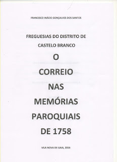 Publicamos recentemente o nosso X trabalho sobre o Correio nas Memórias Paroquiais de 1758.