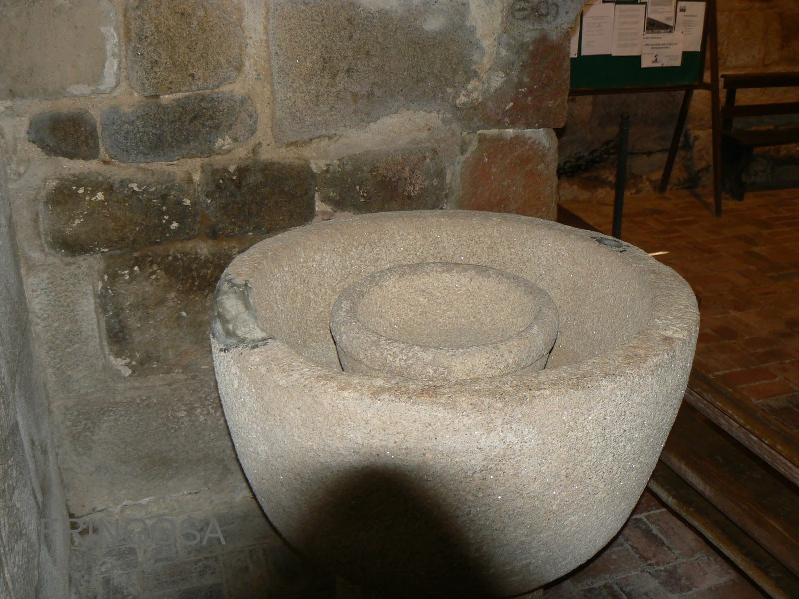 Entrada principal virada a poente. Algumas relíquias menos elaboradas estão aqui expostas, fazendo lembrar o local primitivo (nártex) onde se mantinha quem não podia entrar no templo; onde param as restantes, que estão expostas no livro A IGREJA DE S. PEDRO DE LOUROSA? Mania de retirarem do local primitivo os bens de uma povoação pequena, para engordarem algum museu de cidade. Mentalidade provinciana de certa elite dita de superior intelectualidade.