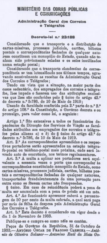 Multa transporte indevido de correspondências.
