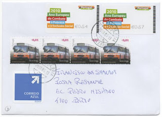 Marca no verso de chegada à Posta Restante de Pedro Hispano em 11.05.2010 e levantada no dia 12.05.2010.