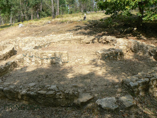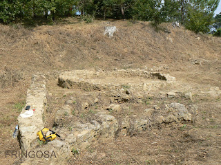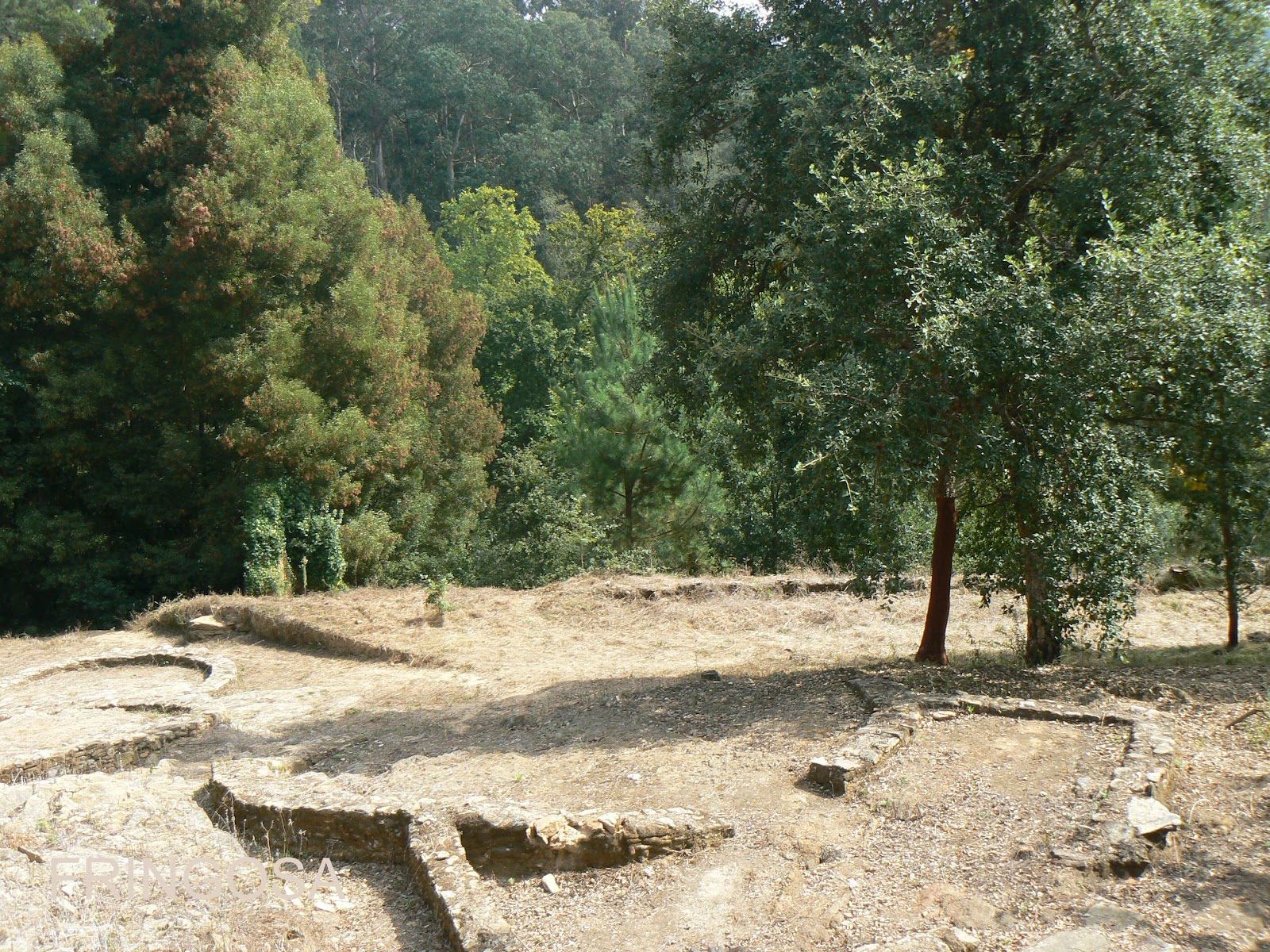 Zona do Castro já intervencionada pelos arqueólogos; nota-se a inclusão da tela na estrutura.