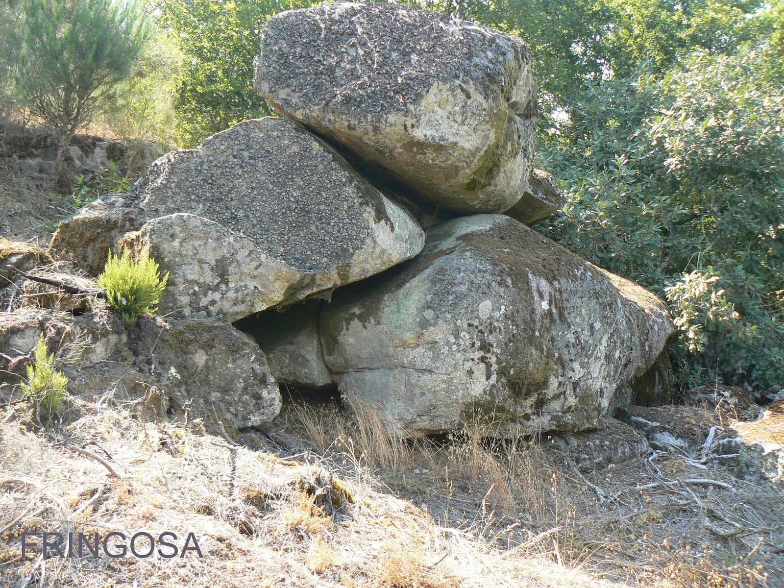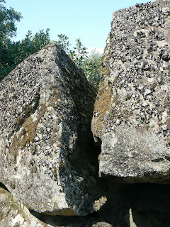 Estes enormes pedregulhos estão soltos; o de cima esta partido em dois.