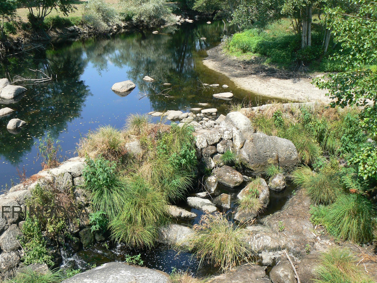 Represa a jusante da ponte: aqui corre água, é um bonito lugar. Infelizmente o cheiro é insuportável, pois do seu lado direito é vertido um esgoto.