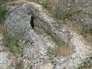 Sepultura ovalada de menores dimensões, possivelmente de uma criança. Está no mesmo afloramento granítico da antropomórfica.