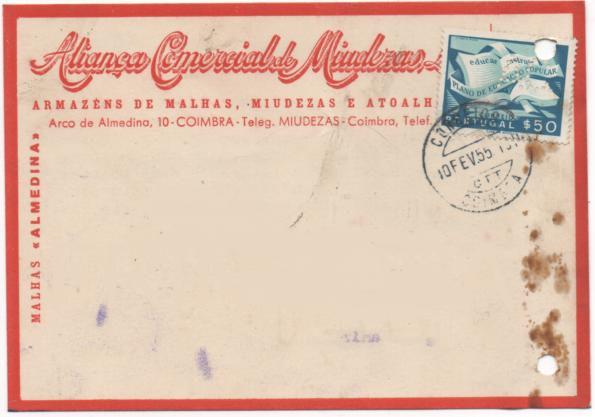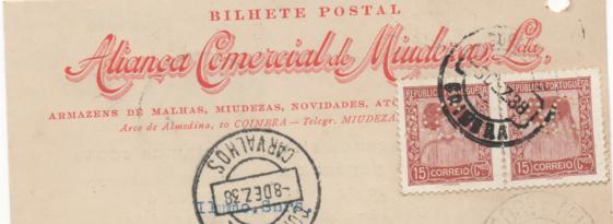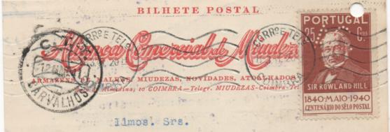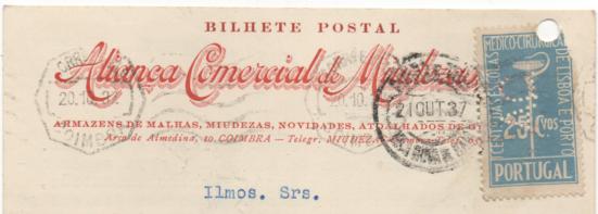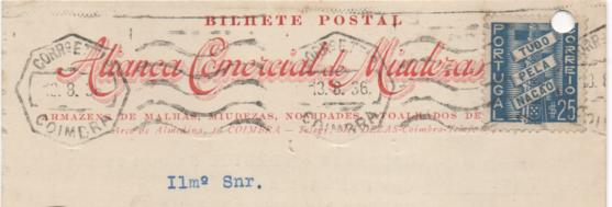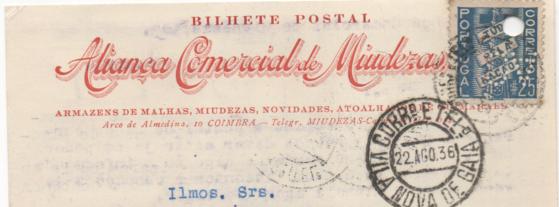 A data de circulação postal de um selo não perfurado desta empresa de Coimbra, que conhecemos antes dos perfurados é: 13 de Agosto de 1936.