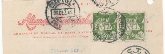 Em 24 de Dezembro de 1941 Aparece um postal com um par de selos de 15 centavos não perfurados da emissão: Costumes Portuguesas (1ª. emissão).