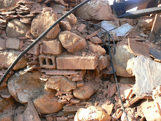 Ao fundo, continuam as pilhas de pedras roladas.