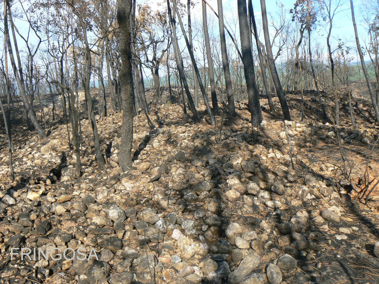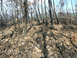 Estas imagens só foram possíveis após o incêndio que fustigou esta área no passado verão: a quantidade de mato, tornava impossível a visão total deste enorme conjunto de pedra rolada.