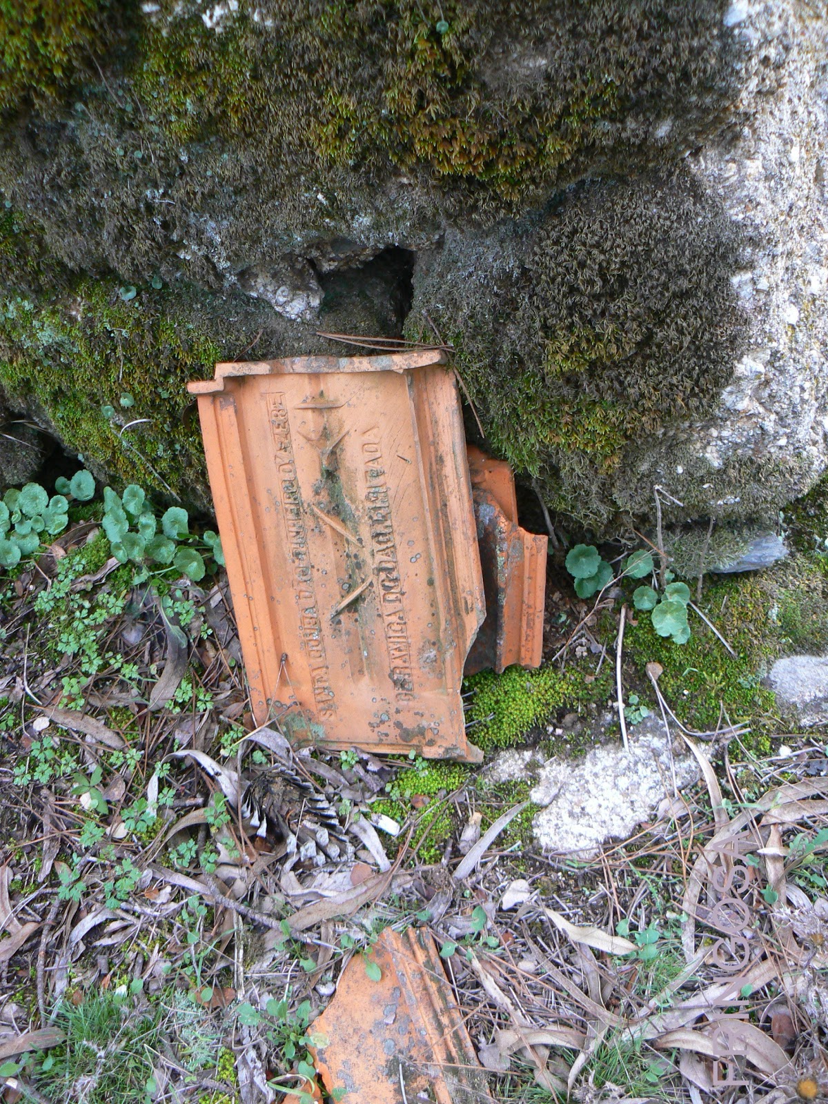 Ainda não tinha visto este tipo de telha (lado esquerdo)parecida com as tégulas romanas. Pelas características é de fabrico industrial.