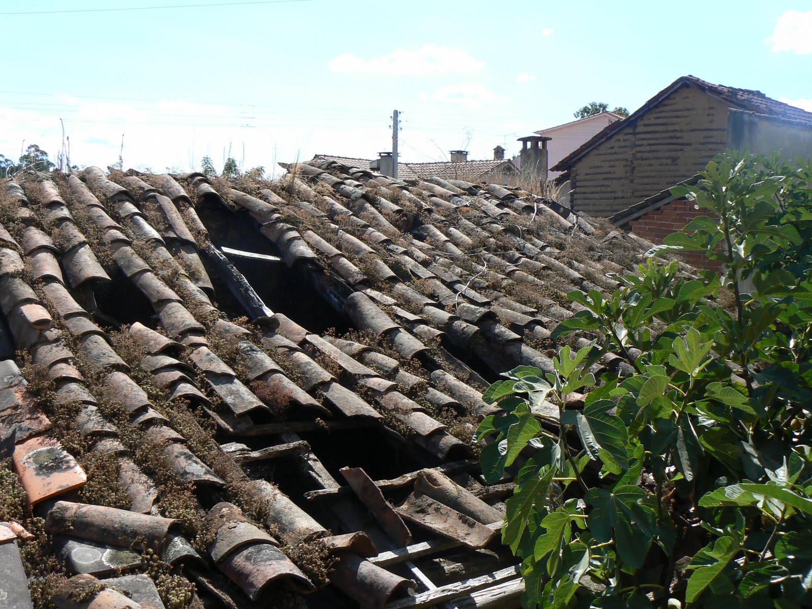 Mesmo telhado da casa em ruínas: esta parte do telhado é mais antiga, apresenta a telha canudo.