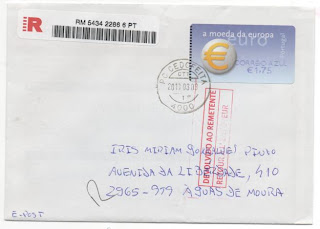 Marca no verso de chegada à Posta Restante de Santo Ovídio em 11.05.2010 e levantada no mesmo dia.